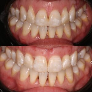 But why do gums recede in the first place? Many people don’t realise their gums are receding and that’s because gum recession is a chronic condition that progresses gradually over time. The most common initial cause is either physical trauma from over-brushing (brushing too often and with too much force), or ironically the opposite – poor oral hygiene causing gum inflammation (gingivitis) and leading to inflammatory gum recession. Some other common contributing factors to gum recession include teeth grinding, misaligned bite, genetics, and hormonal changes such as pregnancy.